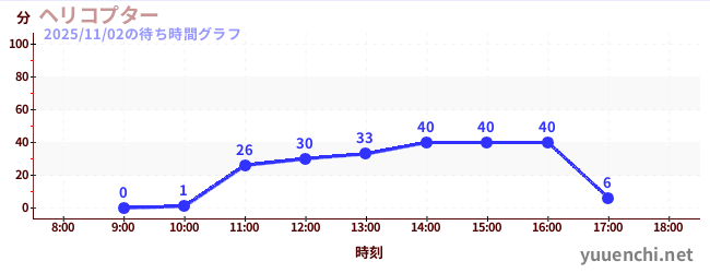 2025/11/02の待ち時間グラフ (ヘリコプター)