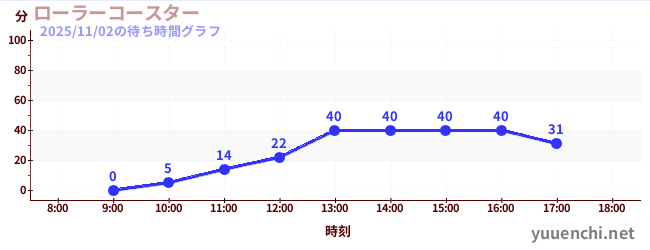 2025/11/02の待ち時間グラフ (Roller Coaster)