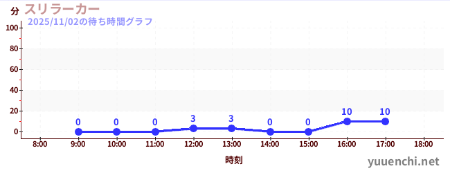2025/11/02の待ち時間グラフ (スリラーカー)