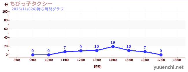 2025/11/02の待ち時間グラフ (ちびっ子タクシー)