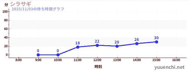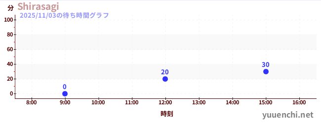 2025/11/03の待ち時間グラフ (Shirasagi)