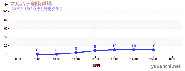 2025/11/03の待ち時間グラフ (マルハナ剣術道場)