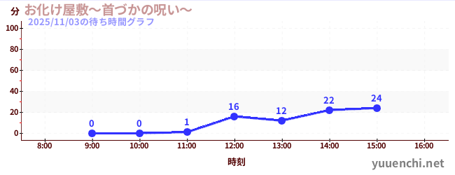 2025/11/03の待ち時間グラフ (お化け屋敷~首づかの呪い~)