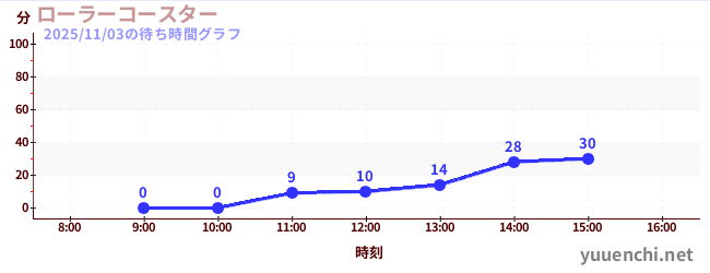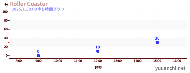 2025/11/03の待ち時間グラフ (Roller Coaster)