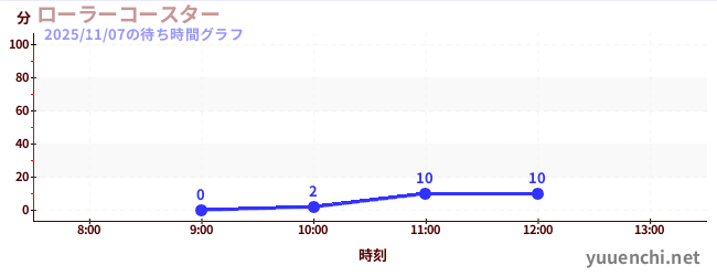 2025/11/07の待ち時間グラフ (ローラーコースター)