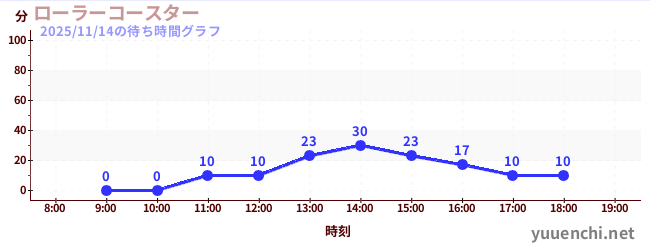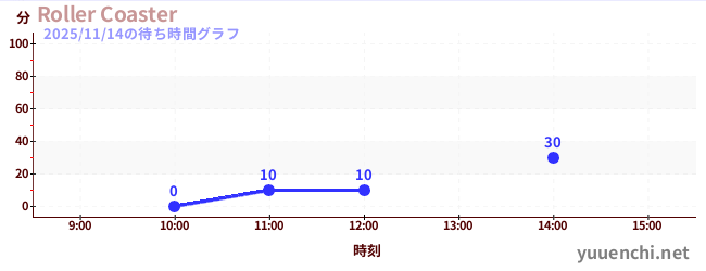 2025/11/14の待ち時間グラフ (Roller Coaster)