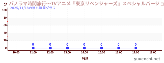 2025/11/18の待ち時間グラフ (パノラマ時間旅行~TVアニメ『東京リベンジャーズ』スペシャルバージョン~)