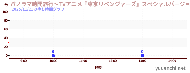 2025/11/21の待ち時間グラフ (パノラマ時間旅行~TVアニメ『東京リベンジャーズ』スペシャルバージョン~)