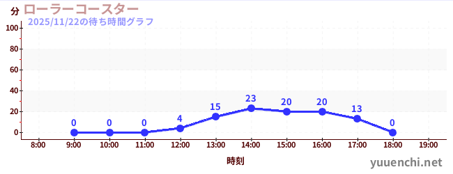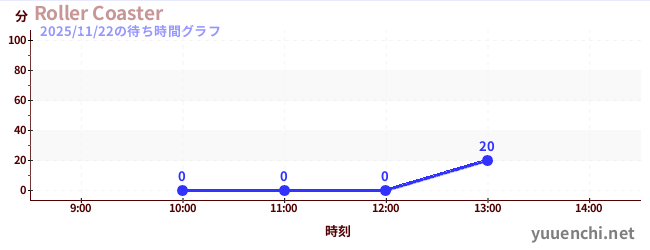 2025/11/22の待ち時間グラフ (Roller Coaster)