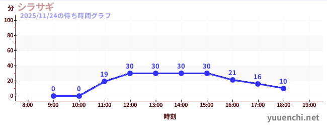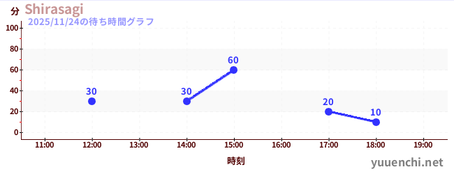 2025/11/24の待ち時間グラフ (Shirasagi)