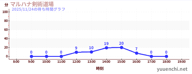 2025/11/24の待ち時間グラフ (マルハナ剣術道場)
