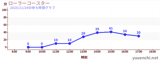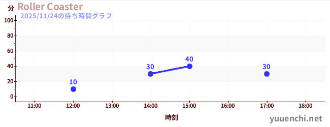 2025/11/24の待ち時間グラフ (Roller Coaster)