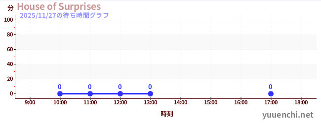 2025/11/27の待ち時間グラフ (House of Surprises)