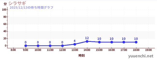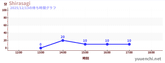 2025/12/13の待ち時間グラフ (Shirasagi)