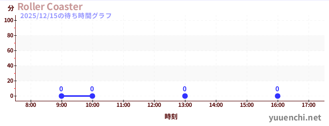 2025/12/15の待ち時間グラフ (Roller Coaster)