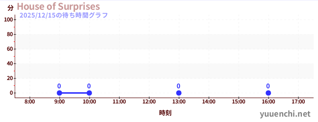 2025/12/15の待ち時間グラフ (House of Surprises)