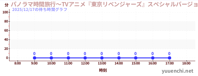 2025/12/17の待ち時間グラフ (パノラマ時間旅行~TVアニメ『東京リベンジャーズ』スペシャルバージョン~)