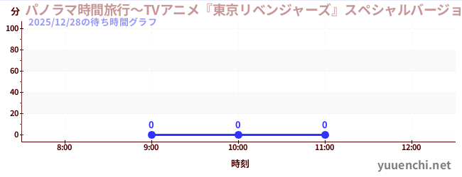 2025/12/28の待ち時間グラフ (パノラマ時間旅行~TVアニメ『東京リベンジャーズ』スペシャルバージョン~)