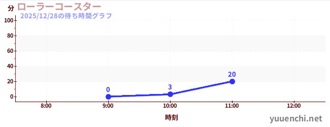 2025/12/28の待ち時間グラフ (ローラーコースター)