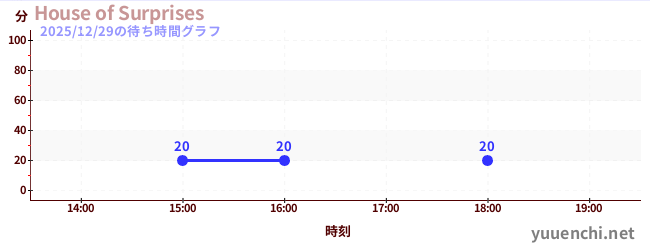 2025/12/29の待ち時間グラフ (House of Surprises)