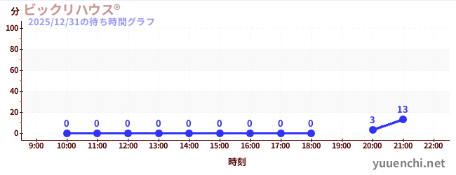 2025/12/31の待ち時間グラフ (ビックリハウス®)