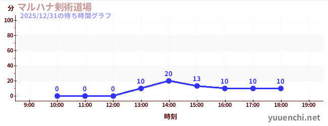 2025/12/31の待ち時間グラフ (マルハナ剣術道場)