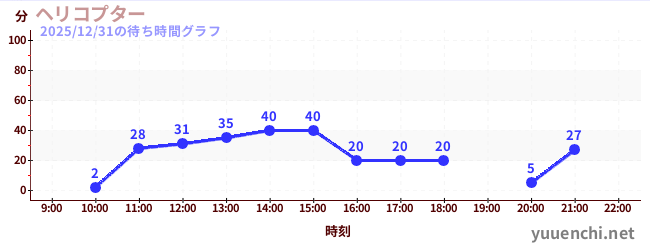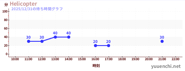 2025/12/31の待ち時間グラフ (ヘリコプター)