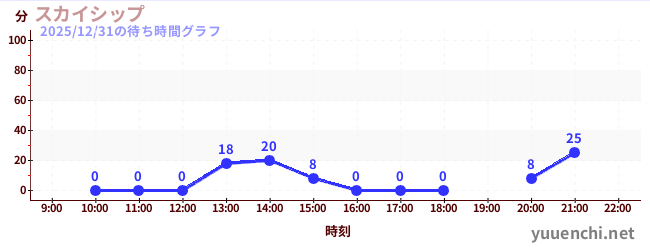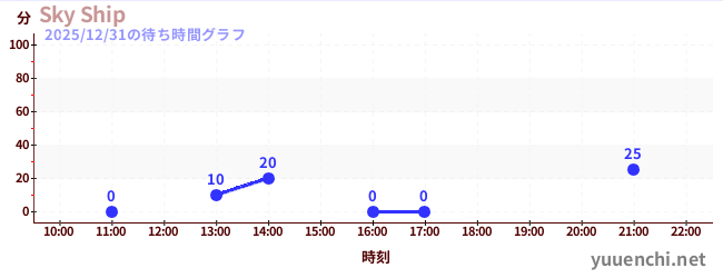 2025/12/31の待ち時間グラフ (スカイシップ)