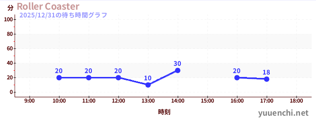 2025/12/31の待ち時間グラフ (Roller Coaster)