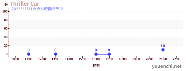 2025/12/31の待ち時間グラフ (Thriller Car)