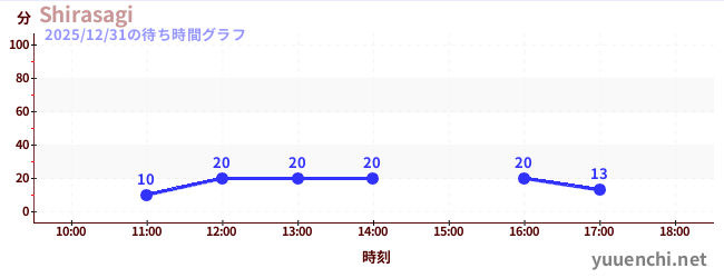 2025/12/31の待ち時間グラフ (Shirasagi)