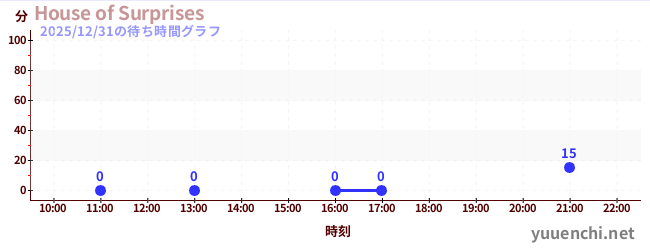 2025/12/31の待ち時間グラフ (House of Surprises)