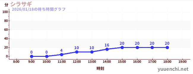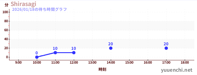 2026/01/18の待ち時間グラフ (Shirasagi)