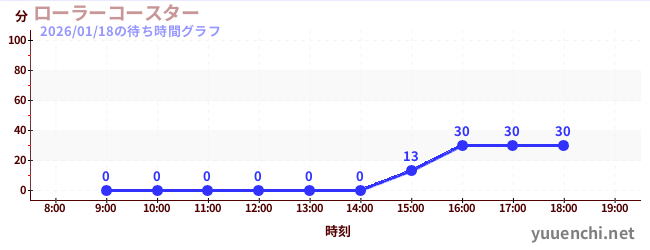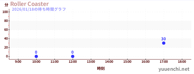 2026/01/18の待ち時間グラフ (ローラーコースター)