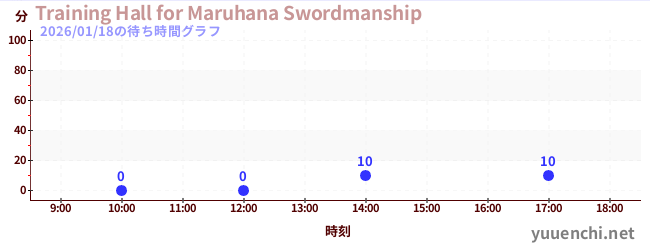 2026/01/18の待ち時間グラフ (Training Hall for Maruhana Swordmanship)