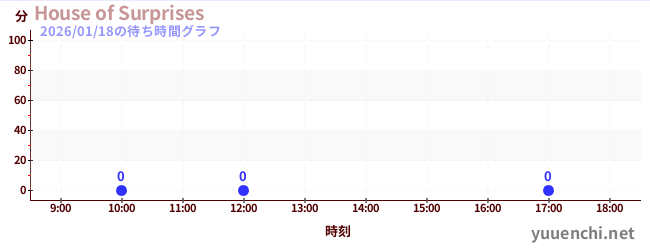 2026/01/18の待ち時間グラフ (House of Surprises)
