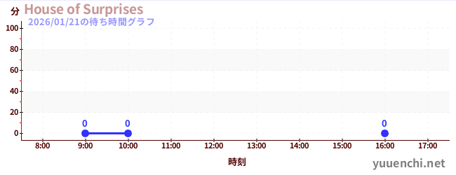2026/01/21の待ち時間グラフ (House of Surprises)