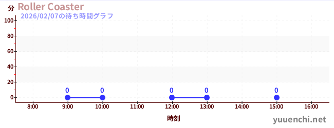 2026/02/07の待ち時間グラフ (ローラーコースター)