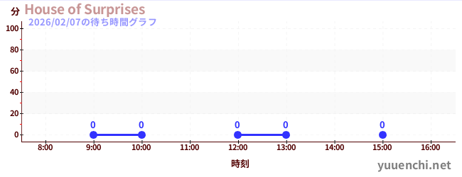 2026/02/07の待ち時間グラフ (House of Surprises)