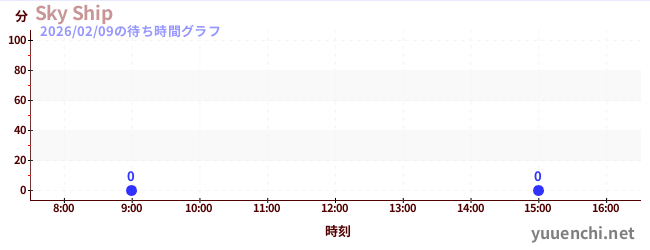 2026/02/09の待ち時間グラフ (Sky Ship)