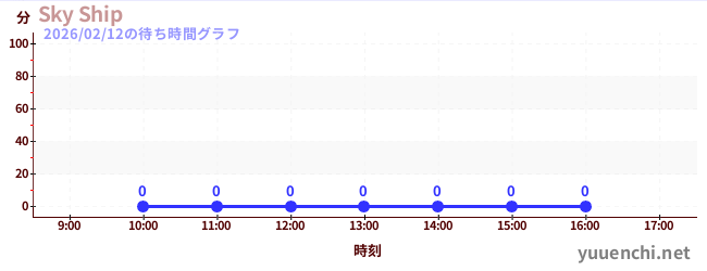 2026/02/12の待ち時間グラフ (Sky Ship)