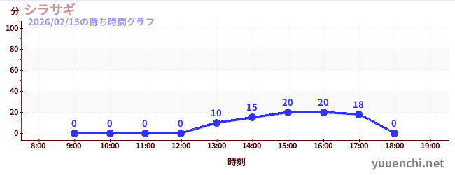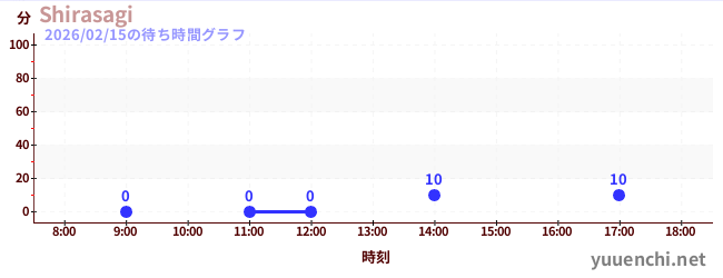 2026/02/15の待ち時間グラフ (Shirasagi)