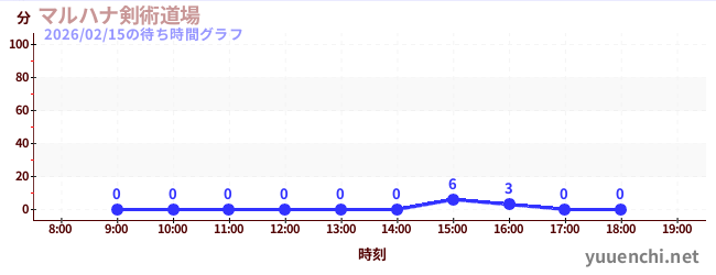 2026/02/15の待ち時間グラフ (マルハナ剣術道場)