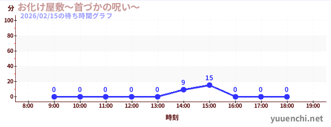 2026/02/15の待ち時間グラフ (お化け屋敷~首づかの呪い~)
