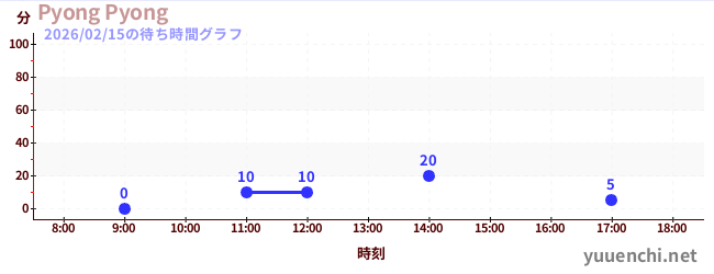 2026/02/15の待ち時間グラフ (Pyong Pyong)