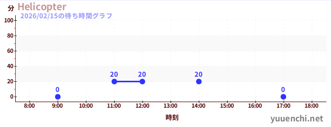 2026/02/15の待ち時間グラフ (ヘリコプター)