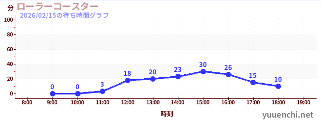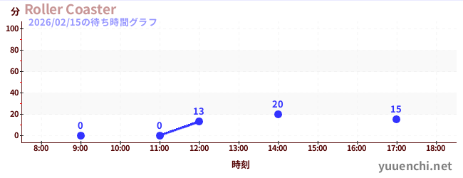 2026/02/15の待ち時間グラフ (ローラーコースター)