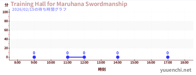 2026/02/15の待ち時間グラフ (Training Hall for Maruhana Swordmanship)