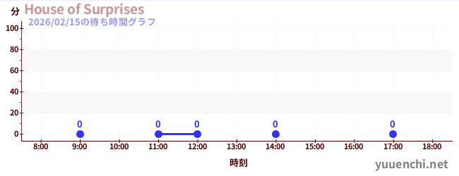 2026/02/15の待ち時間グラフ (House of Surprises)