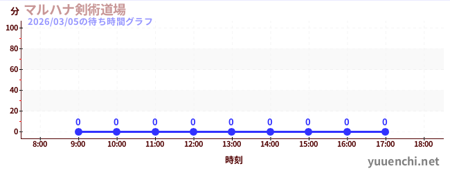 2026/03/05の待ち時間グラフ (マルハナ剣術道場)